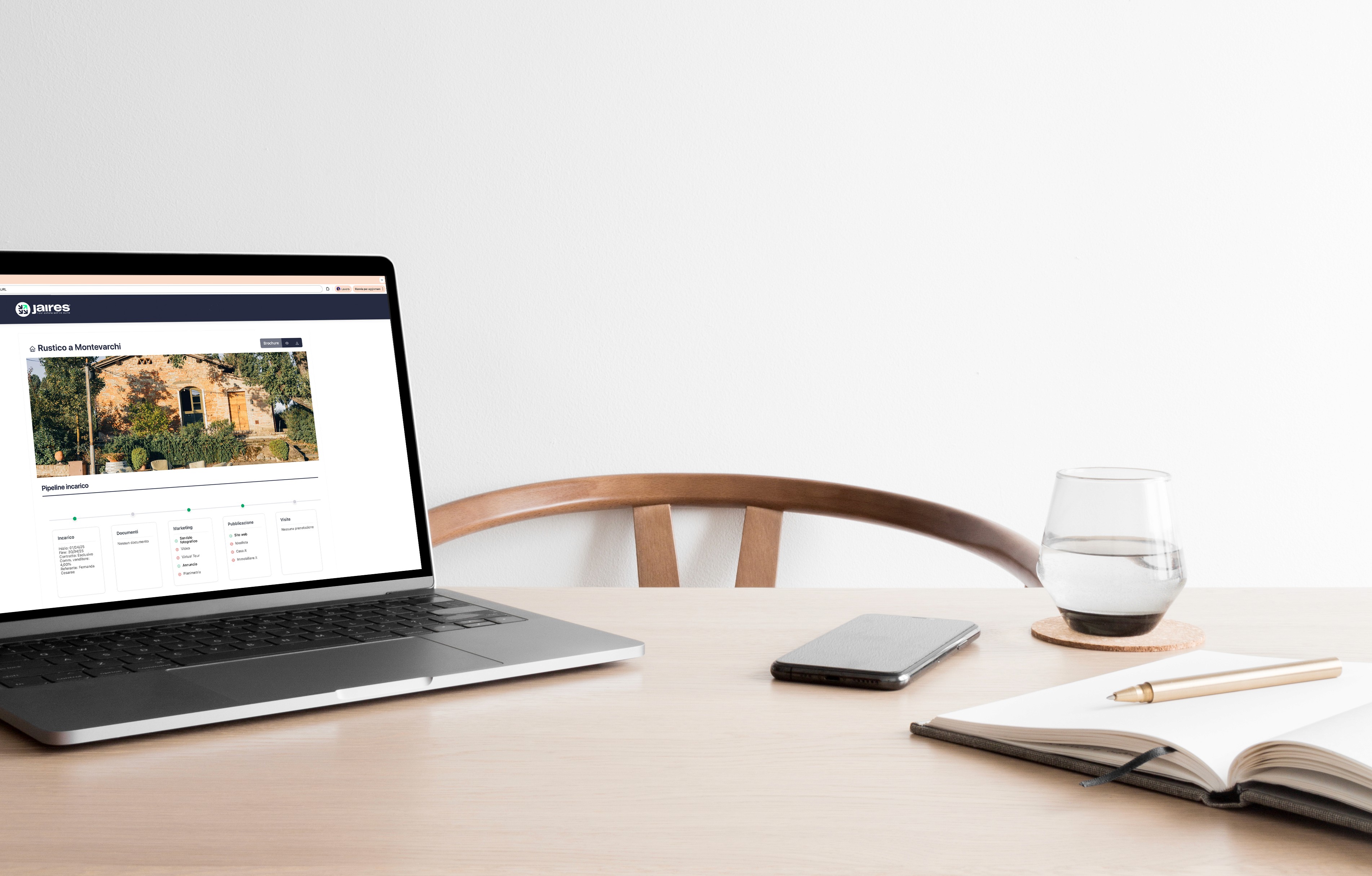 Dove prima servivano Excel per la pipeline, Calendly per le prenotazioni, Dropbox per i documenti e WhatsApp per tutto il resto, JAIRES integra ogni processo in un unico ecosistema.